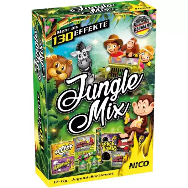 Jungle Entdecker aufgepasst: Das nächste Abenteuer wartet auf euch! Entdeckt im Jungle Mix 12 spannende Abenteuer mit über 130 pyrotechnischen Effekten.