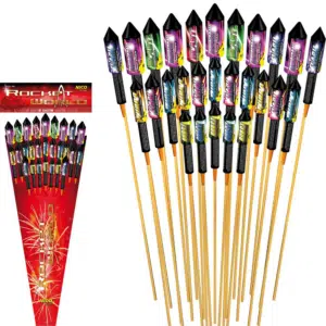 Riesiges 27-teiliges Raketensortiment, das keine Wünsche offen lässt! Buntes Potpourri aus unterschiedlichen prächtigen Farbeffekten.